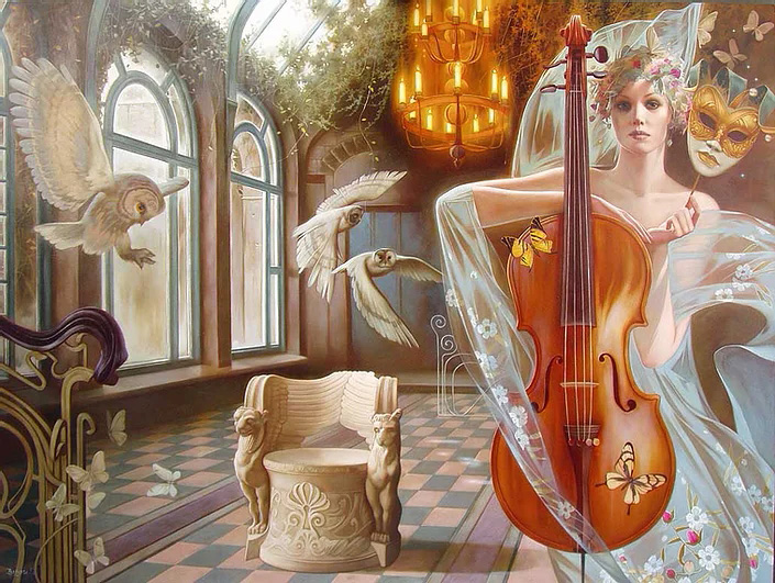 Svetlana Valueva was born in Moscow on October 24, 1966. From 1978 to 1985 she studied at the Moscow secondary art school named after V.I. Tomsky at the Institute named after Surikov. From 1987 to 1993 she studied at the Moscow State Institute of Art named after Surikov. In 1991 she had an internship in Germany, at the Stuttgard Academy of Arts, in the class of Professor Shafrat. The artist's paintings are in private collections in Belgium, Germany, Japan, USA, England, France. "You were born a whole century later," the teachers of painting at the Moscow State Art Institute said to Svetlana Valueva. Her works are imbued with the spirit of the refined romance of the "Silver" age, a style that is commonly called "Art Nouveau" in the West. The heroes of Svetlana Valueva's paintings are women, beautiful and unique, living in a fantasy world. The heroines of her paintings are women who are destined to live during the Silver Age. Some are real, others are a figment of the imagination, but they are all beautiful and unique. "I have always loved to portray women. Sometimes some images were born in my imagination, sometimes I was attracted by real-life women. Each new face, so unique and inimitable, appeared at the beginning in my imagination, and then I depicted it on canvas." Svetlana was born in Moscow and, as far as she can remember, has always drawn. At the age of eight, the girl got to an international exhibition in Cuba, where she received a gold medal. At the age of 9, she won the Grand Prix at the annual international children's drawing exhibition in Delhi. In 1977, a documentary film about outstanding Soviet artists was shown in all cinemas of the country, which told about Svetlana and her work. In the same year, her photo was placed on the front cover of the popular monthly magazine Sovetsky Soyuz. The first personal exhibition of Valueva's works was held at the prestigious Moscow Gallery in 1993. Svetlana's paintings aroused great interest and were bought by a publisher from Japan. In 1995, Valueva, already a well-known artist, completed a series of works on ballet at the request of the Bolshoi Theatre. She lives and works in Moscow.