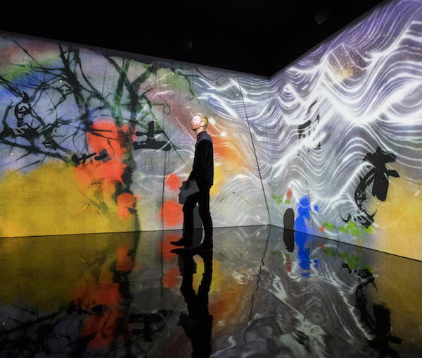 most neurotic toddler. From there it moves into the world of the code-breaker Alan Turing, then comforts one with a harming robot puppy, playing with a ball. Comfort, in this case, doesn’t last for long. ‘Today,’ we are told Artificial Intelligence is all around us, shaping our lives in public and private space, through the media we consume ad the products we buy.’ The Golem, it seems, has gone to ground, and prefers not to advertise its existence too publicly or insistently. Only now and then, in this later part of the main presentation, does one meet anything like a robot. What you encounter instead is an example of the way that AI is being used for radical interventions in nature. For example, a purely synthetic apiary, operating without bees. At the end of this series of presentations, you leave the Curve, and descend to a magical realm in the Barbican’s second basement – that is to say, to the very deepest space in this vast complex. Here you will find yourself enclosed in an installation entitled What a Loving and Beautiful World. Butterflies flitter through trees. Chinese characters (in fact Japanese, since this is a Japanese production) loom up and disappear. You soon learn that everything you see around you moves in response to your shadow, your gestures, and to the shadows and gestures of those who happen to be there with you in the space. The spectacle offered is breathtaking, in an exotic oriental way. At first, I felt I had become part of an alien cosmos, Then, alas, after fifteen minutes of playing with shadows, I started to feel claustrophobic. It all seemed like a good metaphor, suitably sweetened, for what AI with no pretense to being art was already doing in the outside world. You think you can grasp the changes, and you can’t. AI: More than Human 16 May—26 Aug 2019, Across the Barbican Centre £15 weekdays £17 weekends |
